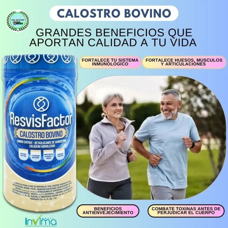 El calostro es un alimento en polvo que fortalece y regula el sistema inmunológico, aportando beneficios de antienvejecimiento, ofrece protección contra invasiones de bacterias, virus, hongos y otros organismos causantes de enfermedades.